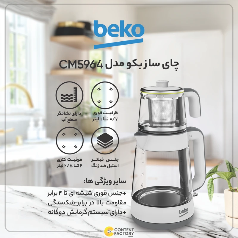 چایساز بکو مدل CM5964 تجربهای لذتبخش از نوشیدن چای را به شما هدیه میدهد. با طراحی شیک و کارایی بینظیر، این چایساز در کمترین زمان چای دلخواه شما را آماده میکند. مجهز به سیستم خاموشی خودکار و جنس استیل ضدزنگ، ایدهآل برای آشپزخانههای مدرن. هماکنون خرید کنید و لحظات چاینوشی خود را لذتبخشتر کنید!