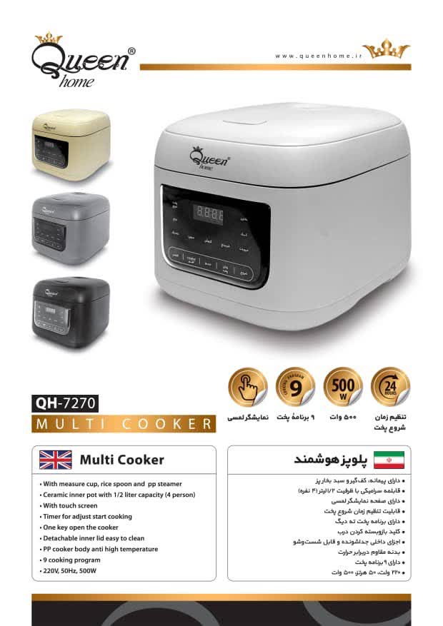 آشپزی سریع و آسان را با مولتی کوکر و پلوپز کویین هوم مدل QH-7270 تجربه کنید! این دستگاه همهکاره با قابلیتهای پخت متنوع، هر وعده غذایی را به یک شاهکار تبدیل میکند. طراحی شیک و عملکرد بینظیر، وقت شما را ذخیره کرده و به غذاهایتان طعمی فراموشنشدنی میبخشد. همین حالا تهیه کنید و لذت ببرید!